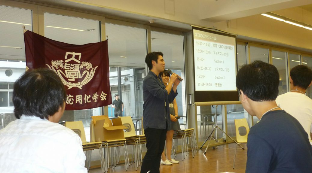 6月9日(土)に縦割り交流会が行われました。この会は若手OB,OGの方々と現役学生が親睦を深めることを目的としており、OB,OG19名、学生44名が参加しました。スローガンとして「集え、知恵の社会人!挑め、若さの大学生!」が掲げられ、本企画のチーフであるM1の柳川さんと政本学生委員長から開会の挨拶が述べられて、15時に開会しました。